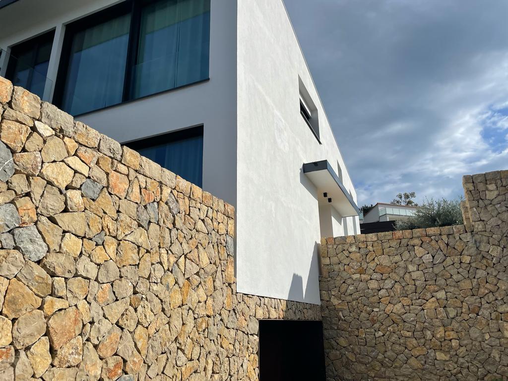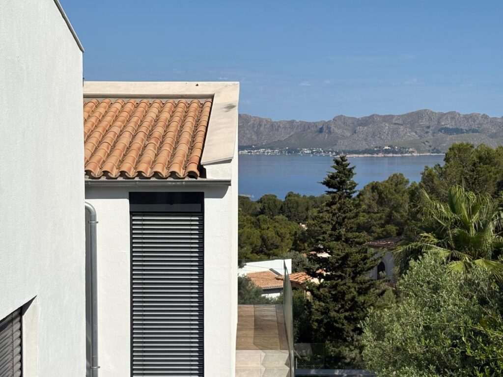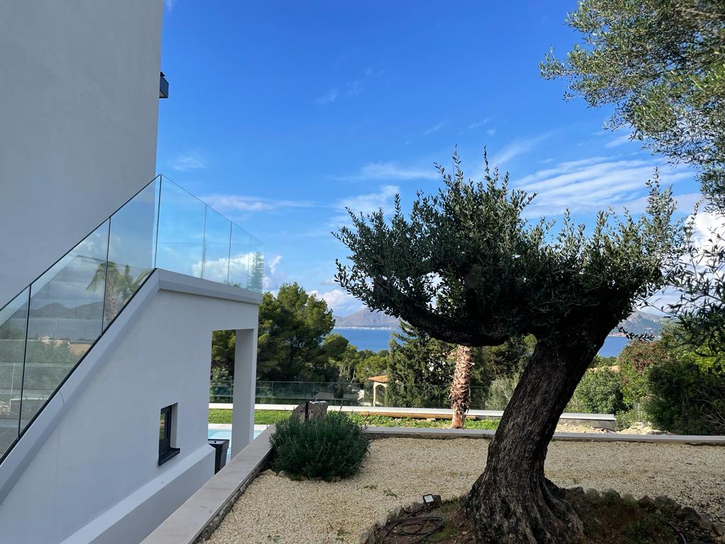 Esta obra nueva está diseñada para maximizar las vistas a la Bahía de Pollença, con ventanales de gran formato, techos altos y espacios conectados con el exterior. El uso de hierro y microcemento refuerza su estilo contemporáneo y elegante en uno de los enclaves más cotizados del norte de Mallorca.